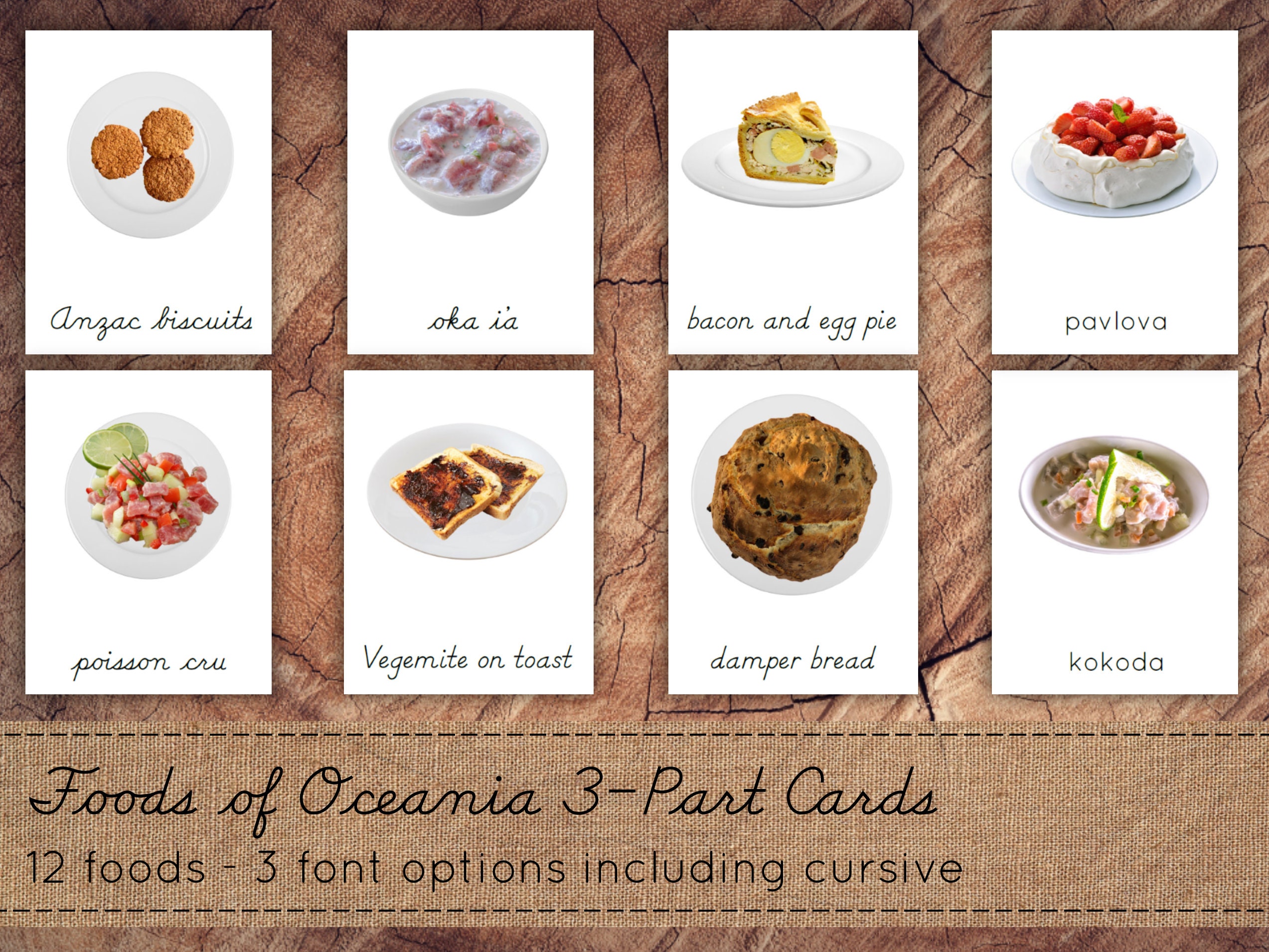 Foods Of Oceania 3 Part Cards Montessori Nomenclature Cards Etsy Nederland