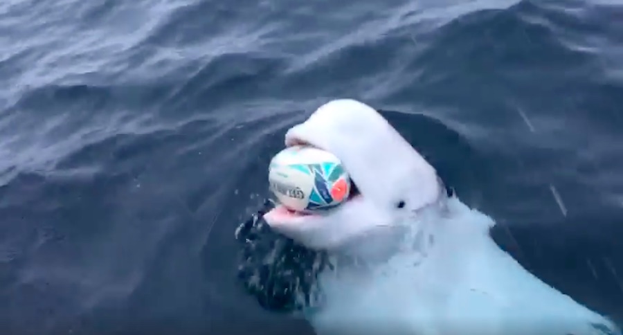 Viral Rugby Playing Whale Could Actually Be A Russian Spy Whale Sbs The Feed