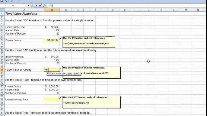 Calculating Fv Future Value Time Value Of Money Problems Using Excel Youtube